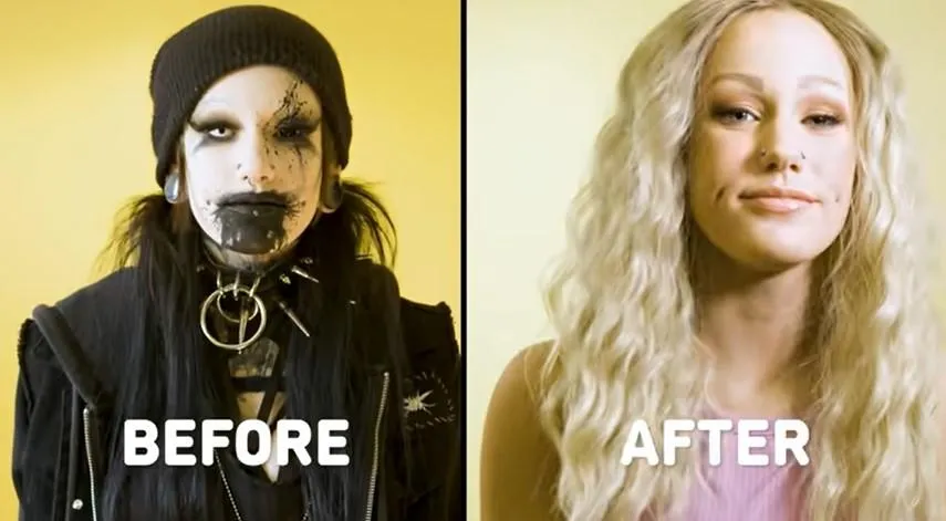 Дівчина практично не пам’ятає, як вона виглядала до свого першого татуювання. Саме тому Джордан погодилася на експеримент від ютуб-каналу Truly. Її спробували перевтілити в образ "дівчини із сусідньої квартири" – тихенької та спокійної кралечки, яка дуже любить яскраві кольори та спокійну атмосферу.