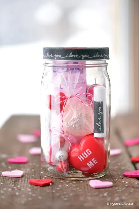 Драже, цукерки, міні-шоколадки, приємні дрібнички – кладіть у баночку все, що придумає уява. Постарайтеся, щоб вони мали яскраві кольори – так подарунок виглядатиме ще красивіше.