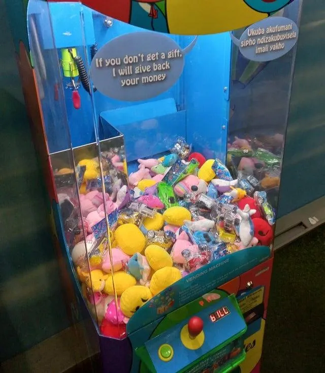 Автомат з іграшками в дитячому залі ресторану. Якщо він не витягне іграшку, то поверне гроші