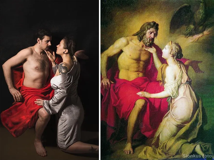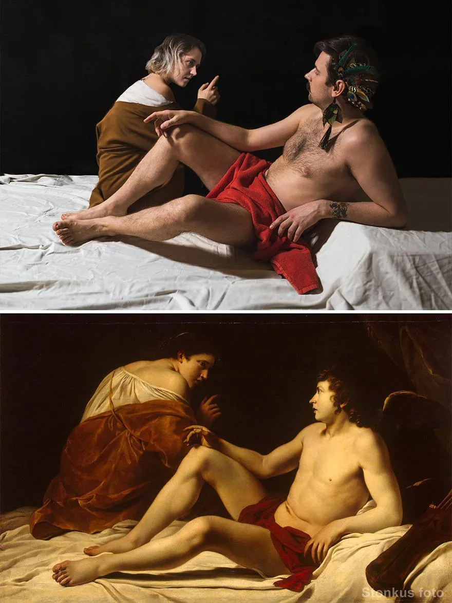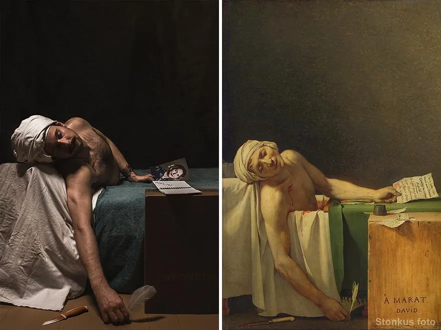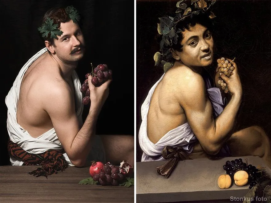 Сидячи вдома, чоловік від нудьги переглядав різні креативні проєкти, створені людьми, які так само не знали, чим себе розважити на карантині. Роботи інших людей настільки надихнули Юстинаса Стонкуса, що вирішив й собі створити цікавий фотопроєкт: перетворити класичні картини відомих художників на справжні фото.