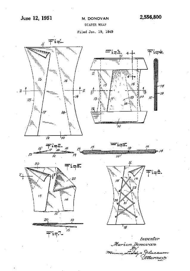 Маріон Донован була звичайною домогосподаркою й мала трьох дітей. Жінка втомлювалася від рутини, особливо – від постійного прання пелюшок. Одного дня жінці набридло це й вона вирішила створити підгузки, які б мали водонепроникне покриття. На той час вже існували звичайні підгузки з тканини та гумові, однак останні травмували ніжну шкіру малюків.