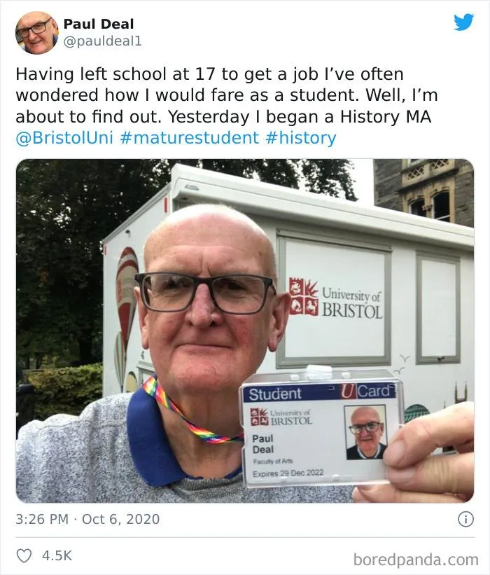Цей дідуся закінчив школу у 17 і вступив до університету лише зараз. Ніколи не пізно починати спочатку