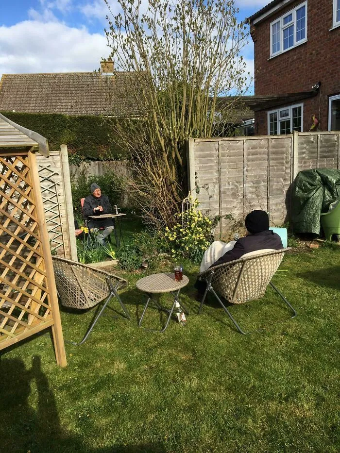 Чоловік зніс паркан, щоб пити пиво разом з сусідом, зберігаючи дистанцію