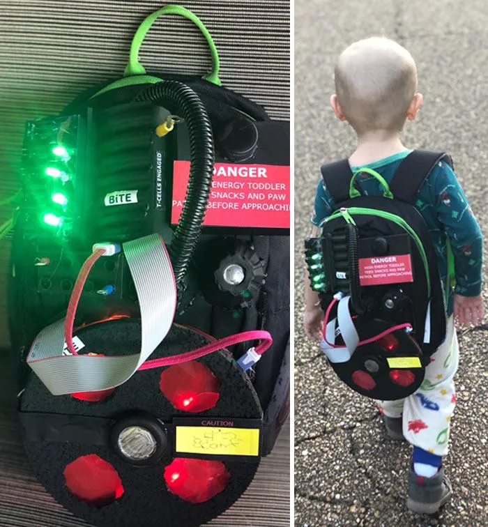 "Я зробив для свого малюка спеціальний рюкзак, щоб він міг вільно пересувати і водночас отримувати необхідні йому для лікування раку ліки."