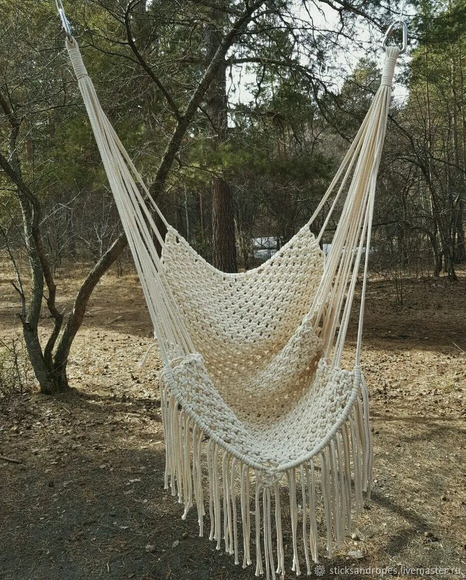 Круглый гамак, выполненный в стиле макраме / Фото netto