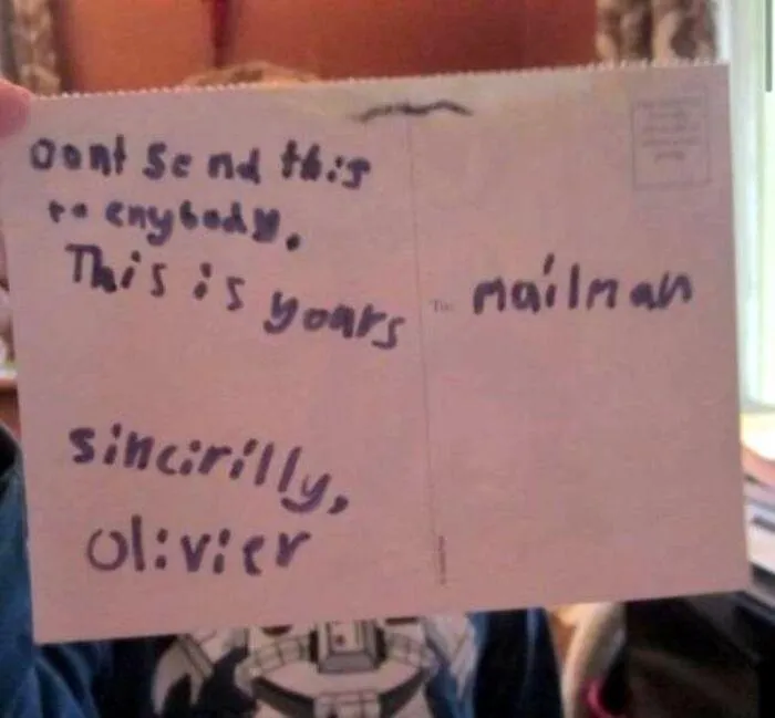 "Почтальон: не отправляйте это никому. Это вам. С уважением, Оливер".