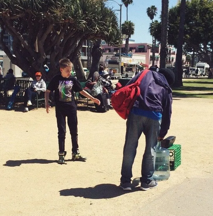 Бездомный дал деньги мальчику, который танцевал на улице, чтобы заработать