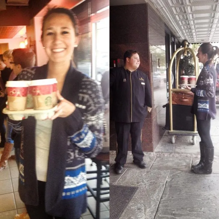 Женщина купила горячий шоколад швейцару, потому что на улице было холодно