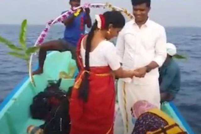 Церемонию сняли на видео. На берегу молодоженов встретили родственники, которые поздравили их, прежде чем они продолжили другие ритуалы.
