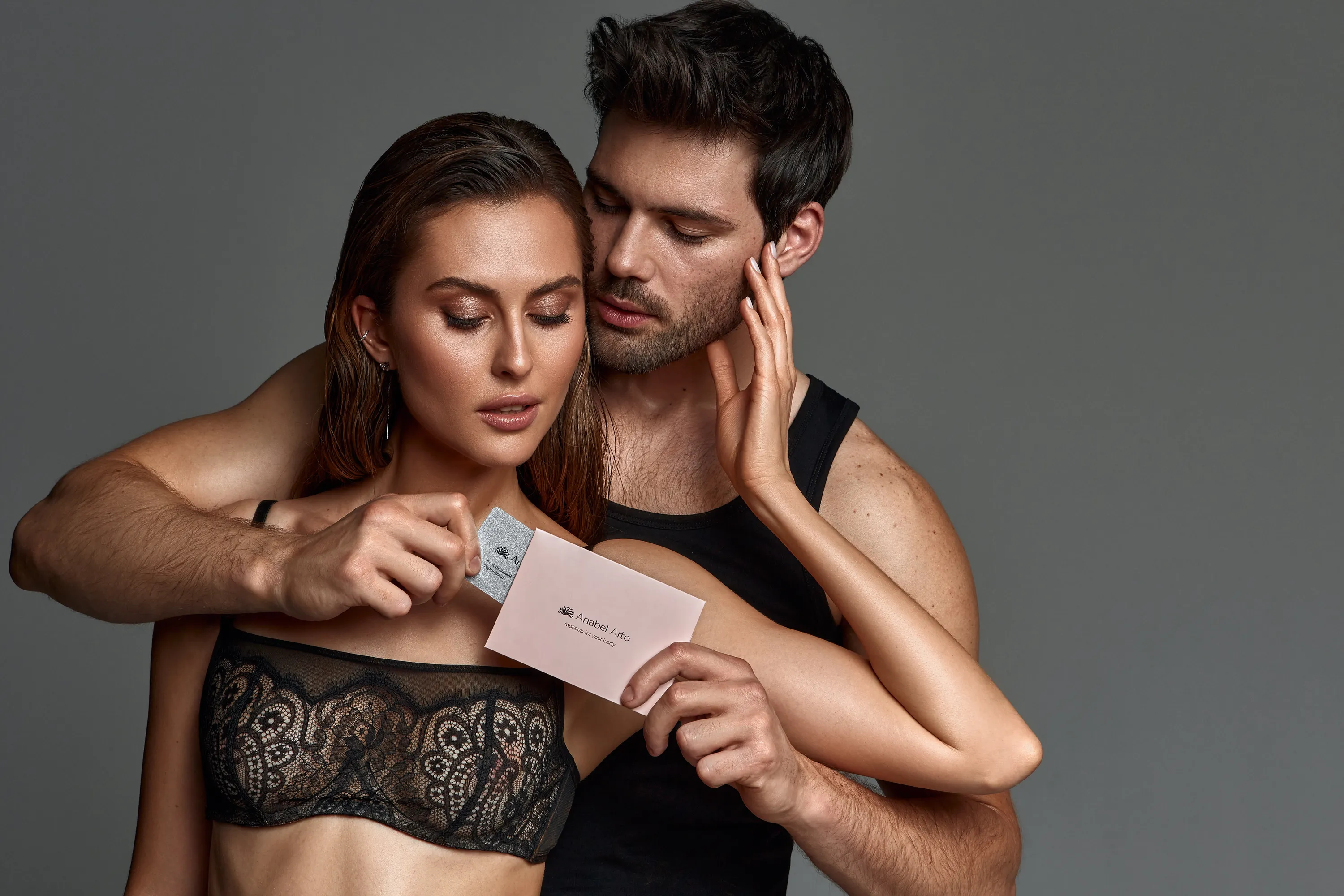 Подарочные наборы всегда создают вау-эффект. Можно подобрать наолнение на хоть какой бюджет и тему. Это может быть большой набор соблазнительного белья. Можно выбрать основу бокса, например комплект белья, а консультант Anabel Arto предложит халатик и рубашку или пижаму из этой же серии, пояс, чулки. Можно также добавить небольшие приятные безделушки – гартеры, подвязки и другие аксессуары.