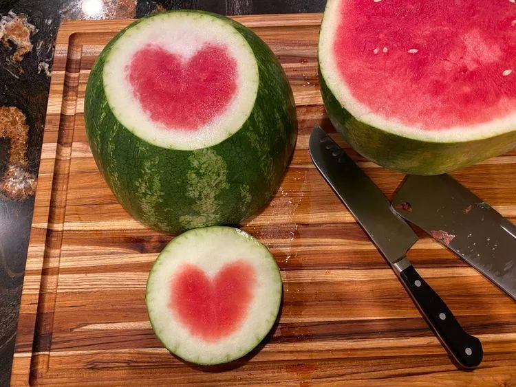Женщина разрезала арбуз и искренне удивилась от этого узора
