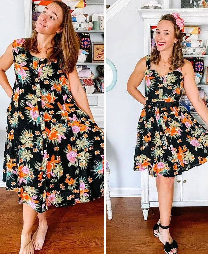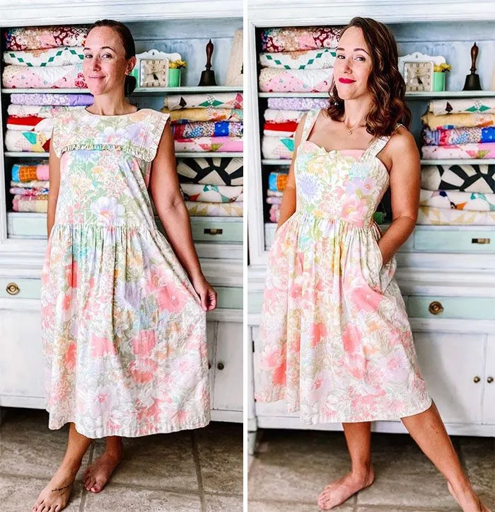 Кэтлин Трантем – известная в соцсетях швея, мама троих детей и жена военнослужащего. Сейчас женщина с семьей живет на Гавайях. А во время карантина она посвятила все свое время новому увлечению, перешивая платья, которые она раньше нашла на секонд-хенде. Недавно ее семья переехала на Гавайи, но женщина не перестает давать новую жизнь старой одежде.