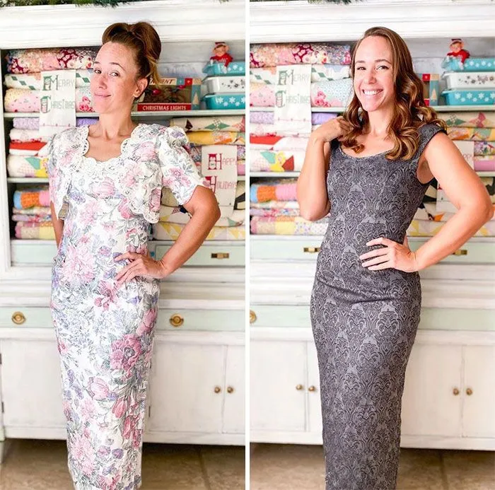 Чтобы одни платья выглядели более современно, достаточно было просто отрезать рукава или сделать новый вырез. Другие же в руках швеи превратились в совсем другую одежду!