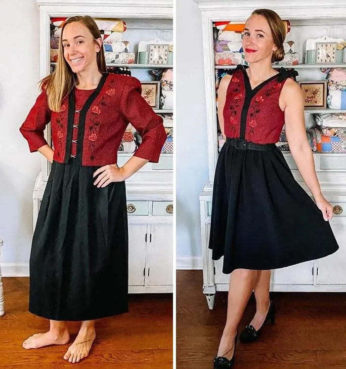 Швея призналась, что никогда не была безразлична к винтажной одежде. Но поскольку настоящий качественный винтаж довольно трудно найти, а он еще стоит заоблачно, то несколько лет назад Кэтлин просто перешивает одежду сама. Именно во время пандемии женщине пришла в голову идея вдохнуть новую жизнь в старую одежду.