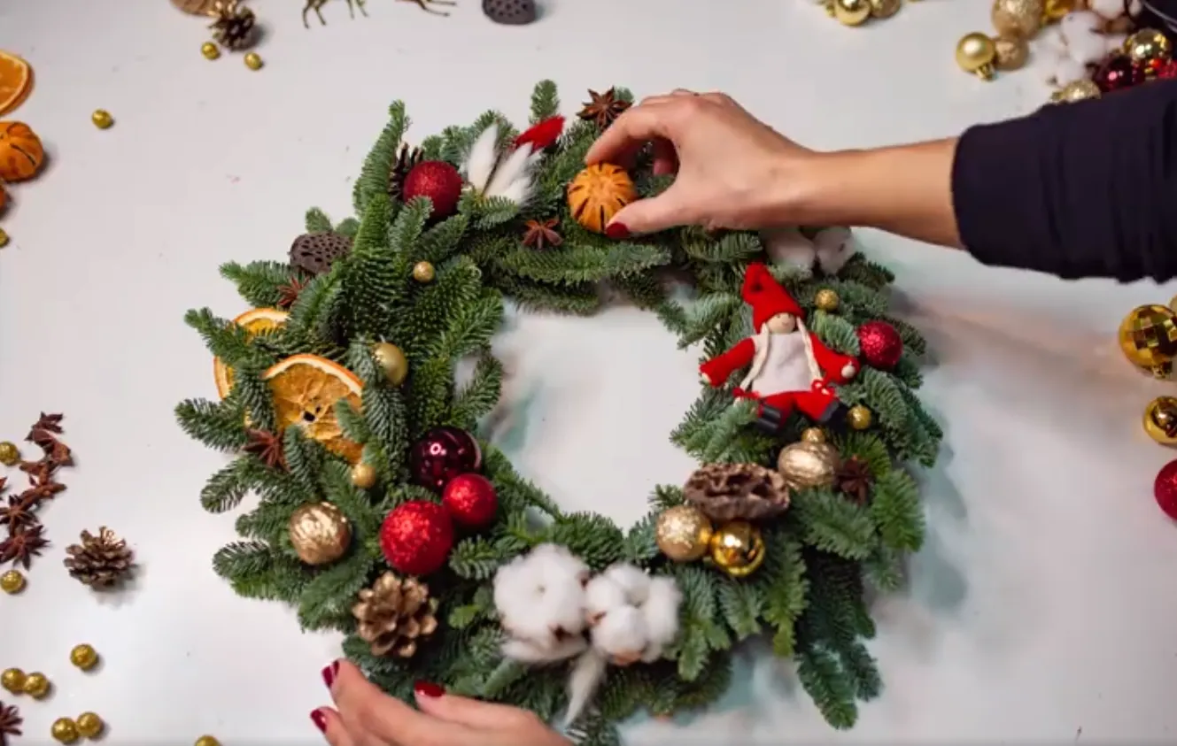С тех пор рождественский венок стал символом праздника. Им можно украсить двери, камин, елку, люстру или стол. Для изготовления новогоднего венка понадобятся легкодоступные подручные материалы: лозы, шишки, ветки елки, конфеты, нитки, фрукты, ягоды - все, что найдется дома.