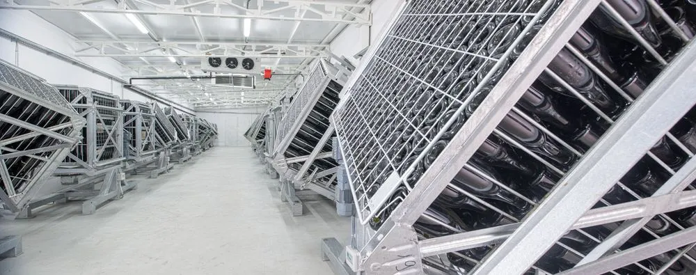 Жиропалеты, которые поэтапно вращаются, заменяя ручной процесс ремюажа игристого вина / Фото SHABO