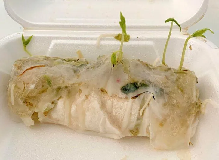 "Я оставил ролл на своем столе на 4 дня. Ростки бобов в нем проросли"