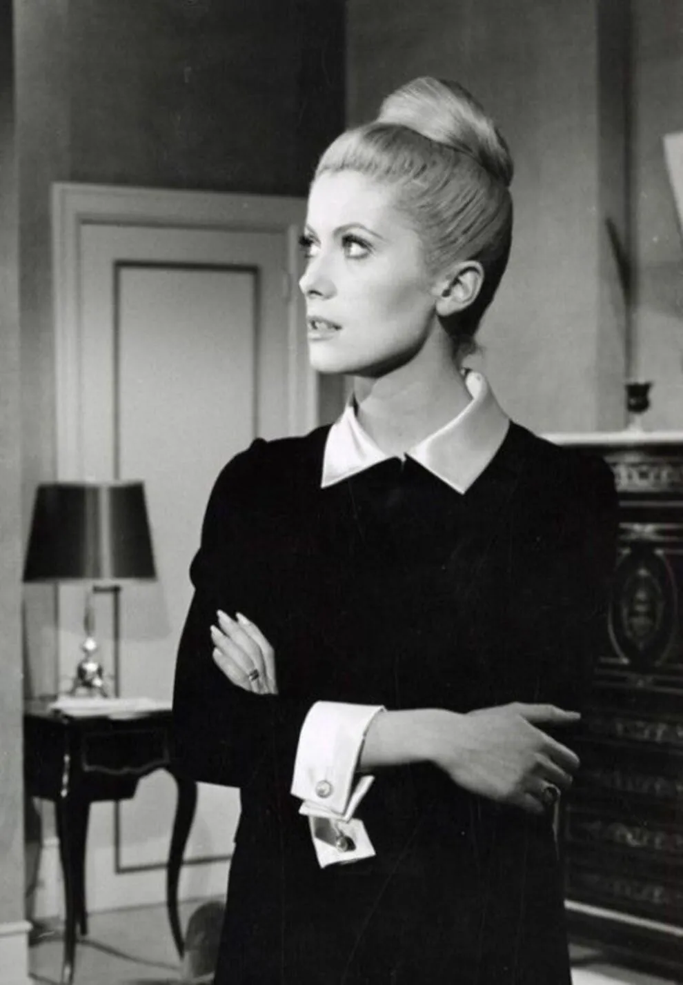 Гардероб главной героини Северины Серизи, которую сыграла Кэтрин Дэнев в киноленте "Дневная красавица", – это изысканная коллекция haute couture Ив Сен-Лорана. В фильме рассказывается история домохозяйки-мазохистки, которая предоставляет эскорт-услуги. Женщина поражает контрастными экспериментами с нарядами, демонстрируя клиентам свою покорность или, наоборот, доминантность. Культовой в ленте стало вневременное черное маленькое платье с белым шелковым воротничком и манжетами.
