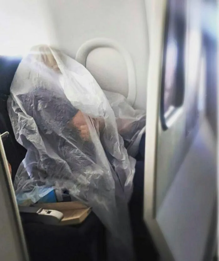 Защиту против Covid-19 никто не отменял, поэтому мужчина решил оригинально оградить себя от мира.