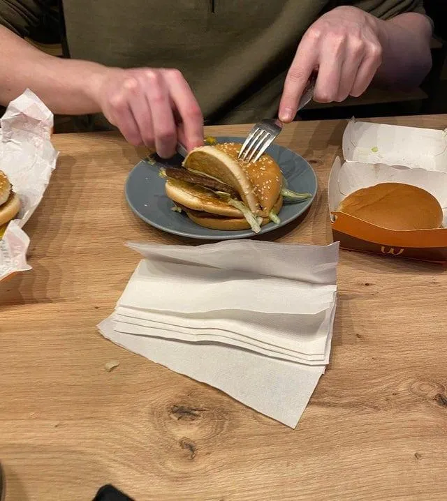"Вы знаете хоть кого-то, кто так ест бургер?"