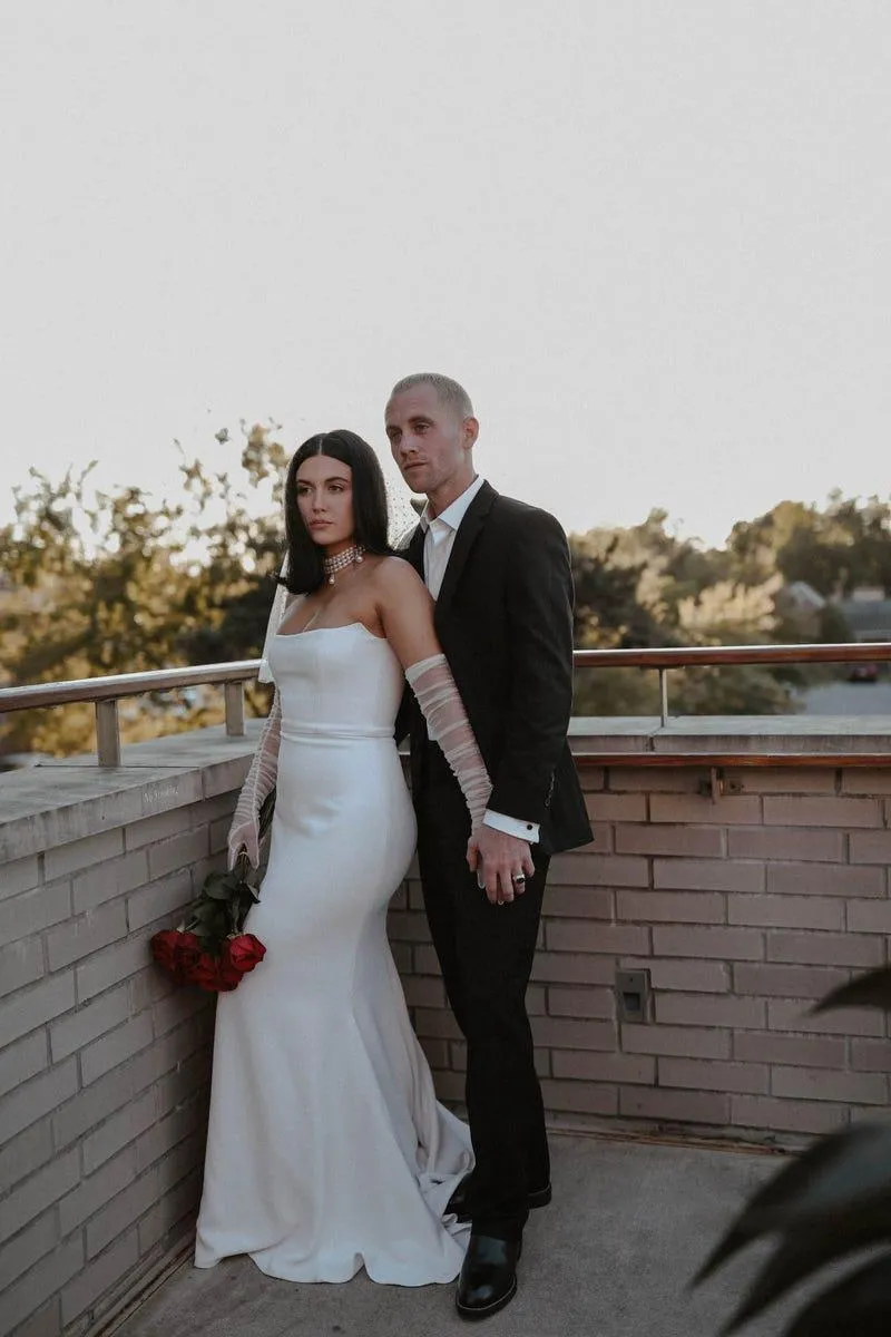 Фасон був настільки універсальним, що з нього можна було створити безліч образів. На церемонії Вора доповнила приталену сукню традиційним мереживом. Вона одягла поверх весільного вбрання рукави розшиті квітами та драпіруванням. Це допомогло створити ідеальний образ для церемонії.