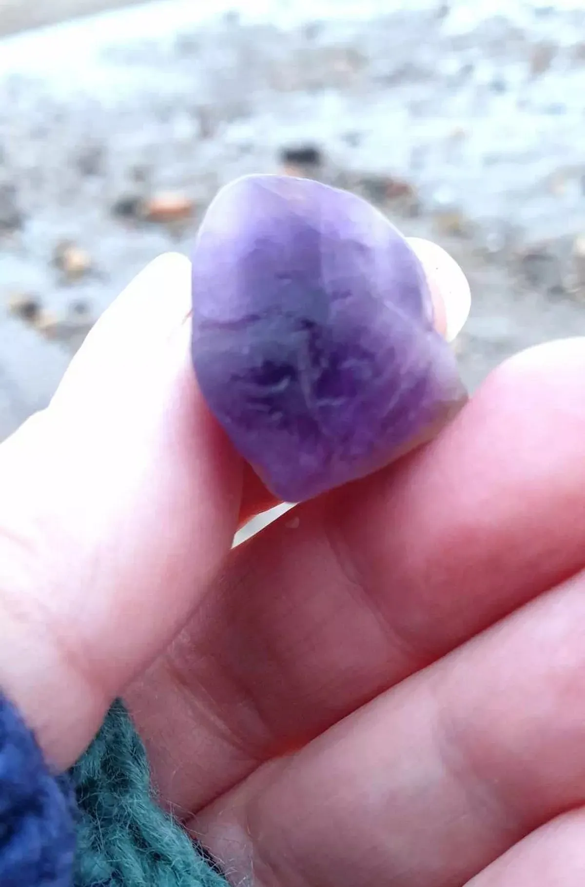 Я вже кілька років прочісую пляжі на східному та західному узбережжі Шотландії, в основному займаюсь пошуками винесених морем черепків кераміки та морського скла, але минулого тижня я знайшла цей чудовий шматок необробленого аметисту. Не можу натішиться цим неймовірним темно-фіолетовим відтінком,