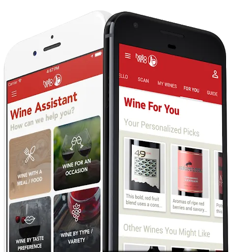 Якщо вам потрібно підібрати вино під певну подію, свято чи конкретний продукт – цей додаток точно вам допоможе. Тут можна поєднувати вино як зі стравами різних країн світу, так і з окремими продуктами. Внесіть ваші критерії відбору та ціновий діапазон, після чого Hello vino поставить вам кілька уточнювальних питань – і ви отримаєте список вин, що задовольняють вашим критеріям, за сортами або окремими марками.