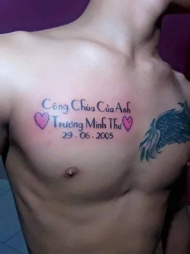 Як результат – тату-майстер зробив йому великий малюнок на грудях. Там було написано "Моя принцеса", ім’я дівчини – Чион Мінь Ху – та день народження – 29 червня 2005 року. А на додачу все прикрасили двома сердечками.