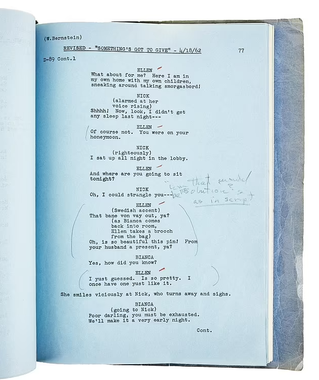 На аукціоні також продали сценарій до останнього незавершеного фільму Монро "Щось має статися". Так, за текст сценарію колекціонери заплатили 57 150 доларів, а за рукописні нотатки голлівудської зірки – 25 400 доларів. Під час знімання останнього фільму Монро рідко з'являлася на майданчику, тому свої думки щодо сценарію висловлювала письмово у блокноті й передавала їх режисеру.