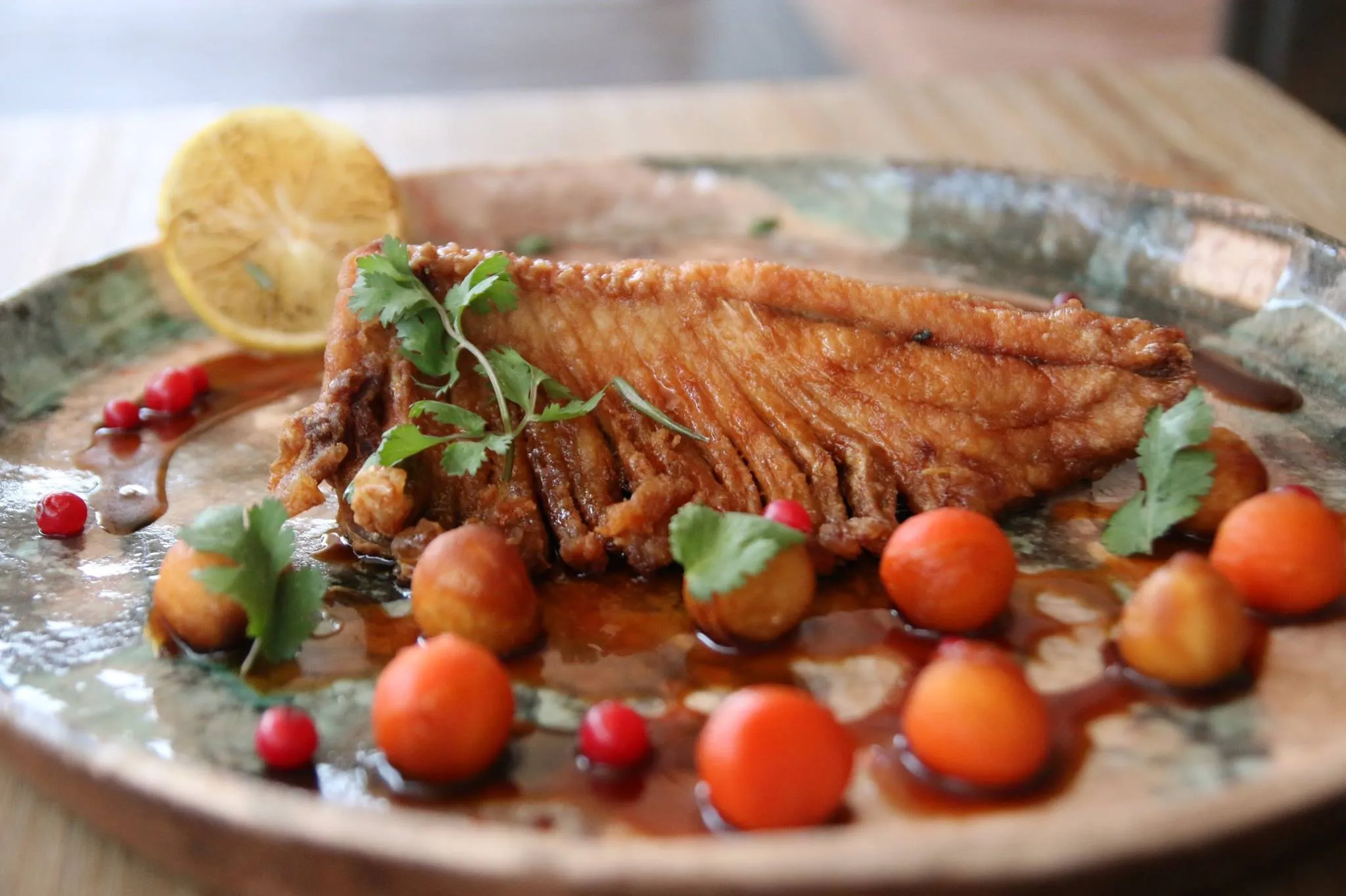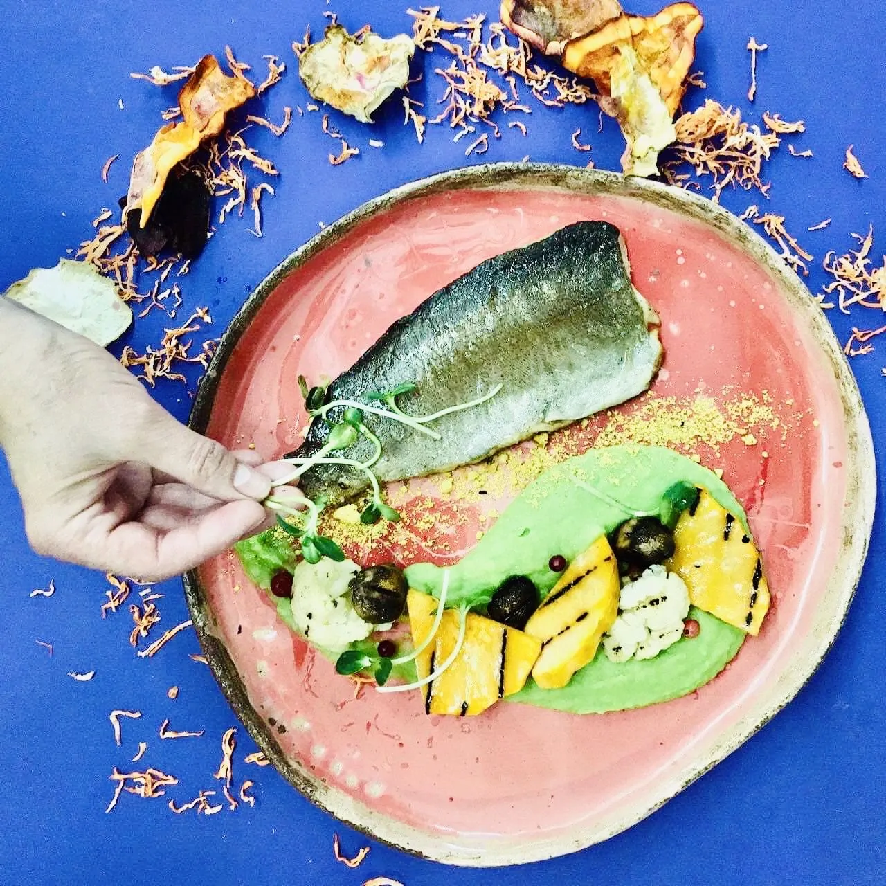 Річкова форель та пюре з зеленого горошку / Фото Klukva&Brukva