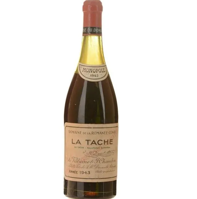 Вино La Tache від видатного шато Domaine de la Romanee-Conti, котре виробляє одні з найдорожчих вин у світі, було виготовлене у 1943 році. Всього тираж цього вина налічував майже 700 пляшок. Останній лот з 4 пляшок цього вина було продано на аукціоні Christie's у 2010 році. З колекції збереглась лише одна пляшка, яка й вважається безцінною.