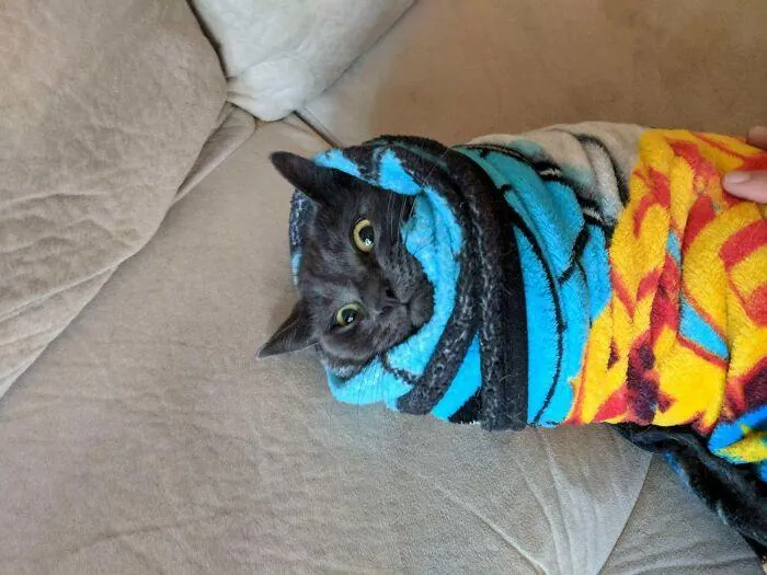 Жінка вчилася пеленати. Котик не дуже задоволений