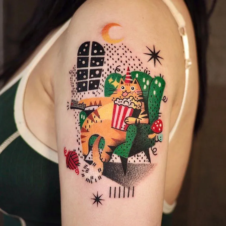Кіт з пультом до телевізора та попкорном / Фото HEN Tattoo
