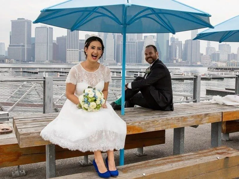 Пара вирішила поспішити з весіллям, адже матір хлопця боролась із тяжкою хворою, тому молодята хотіли якомога швидше зібрати найрідніших за спільним столом. Для події вони обрали особливе місце, де познайомились і закохались, тому поїхали у Бруклін.