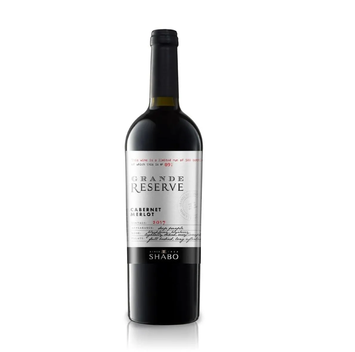 Сорт: купаж SHABO Grande Reserve Cabernet-Merlot створений з європейських сортів Каберне Совіньйон і Мерло. Лози цих сортів були завезені з Європи і висаджені на найбільш цінних ділянках теруару Шабо, прекрасно проявляючи себе в місцевих умовах. Виноград, з якого створюються вина в колекції Grande Reserve, збирають вручну і протягом 15 хвилин з моменту збору рефрижераторами доставляють з виноградників до цехів для переробки. Всі грона проходять два етапи сортування, щоб уникнути попадання неякісних або недозрілих ягід в чан. Переробка винограду проводиться з трьохетапним сортуванням кожної ягоди. Переробляють виноград на найсучаснішому обладнанні з точним контролем температури, що дуже важливо для отримання і збереження його сортовий ароматики. Далі – бродіння: його проводять в дубових чанах, також обов'язково контролюючи температуру в процесі. Цей процес відбувається у відділенні мікровиноробства SHABO – тут винороби працюють над винами з преміальних колекцій бренду.