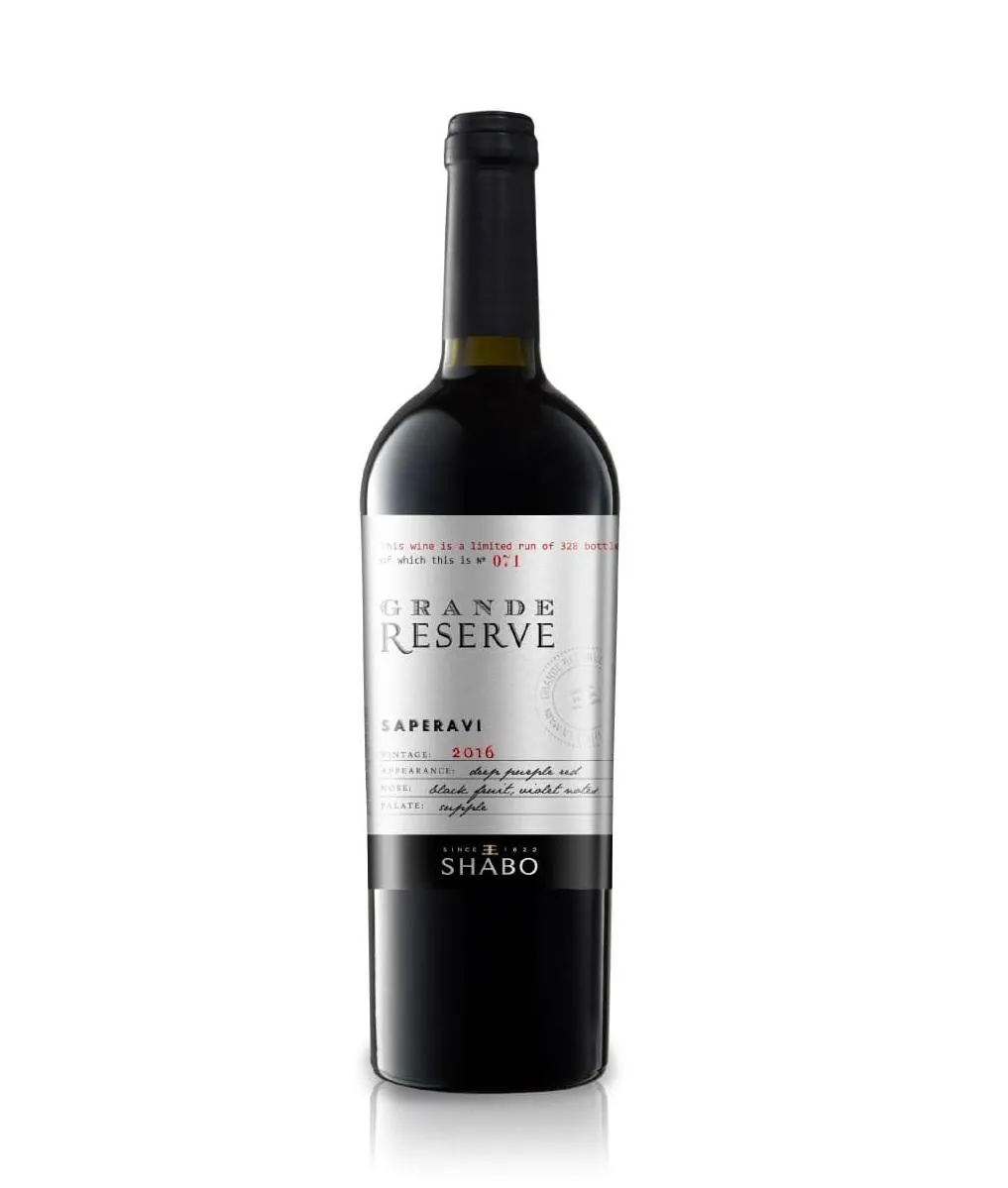 Сорт: Сапераві. SHABO Grande Reserve Saperavi створено з винограду, що росте в Кахетії – знаменитому виноробному регіоні Грузії. Саме тут, в селі Вачнадзіані (зона Мукузані), розташовані виноградники загальною площею понад 48 га, що належать родині Іукурідзе – засновникам компанії SHABO. Виноградники Сапераві займають близько 38 га, саме тут був зібраний виноград для виготовлення цього вина.