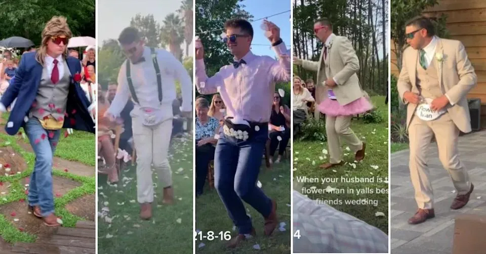 Хлопець кумедно витанцьовував на доріжці, посипав гостей пелюстками і викликав у них усмішку. Люди були здивовані сміливістю друга та радісно аплодували йому.