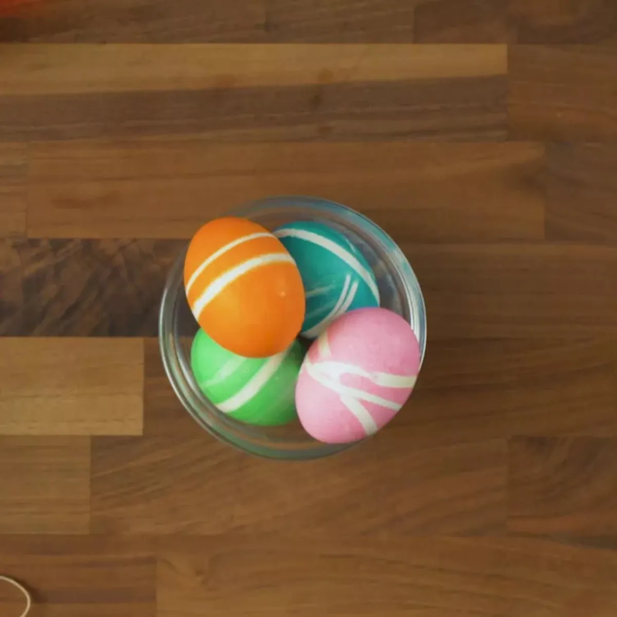 Після того, як яйця висохнуть, зніміть гумки, щоб відкрити смугастий дизайн.