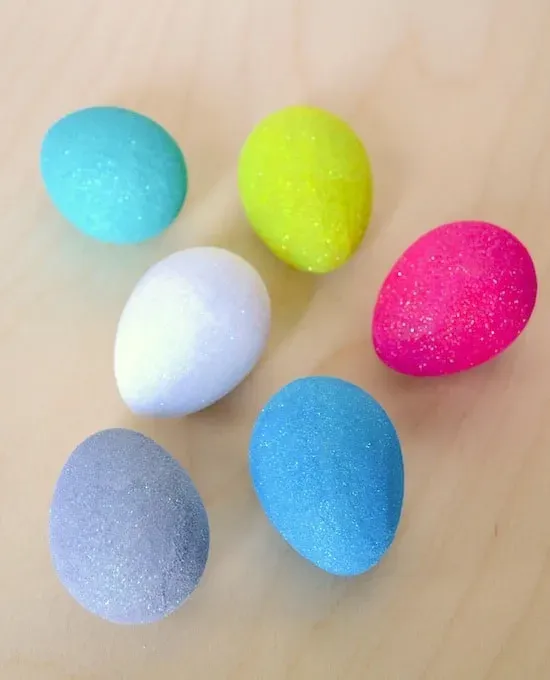 Усе, що потрібно зробити для цього дизайну, це пофарбувати яйця, а потім покрити їх шаром блискіток.
