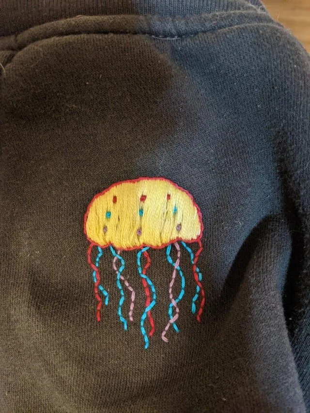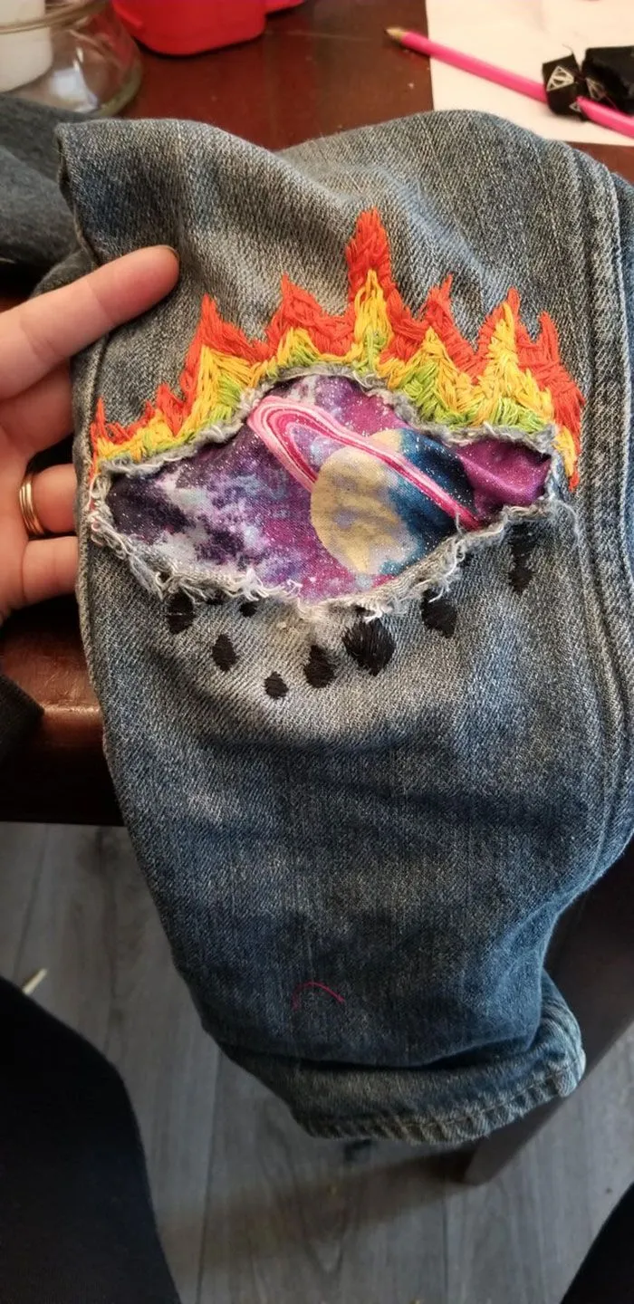 "Мої джинси завжди рвуться на цьому місці. Вони мені дуже подобаються, тому я вирішила їх "відремонтувати"