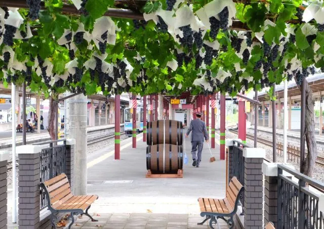 За виноградними лозами Мерло і Ніагара доглядають персонал Японських залізниць і місцеві жителі, які під керівництвом експертів допомагають підрізати виноград і збирати врожай.
