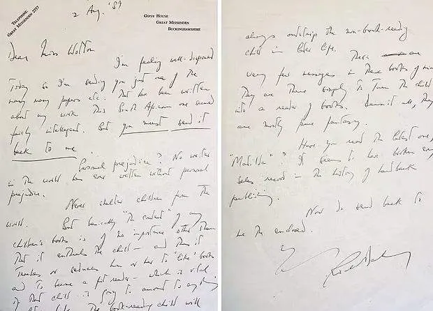 Лист, який написав власноруч Роальд Дал / Фото Daily Mail